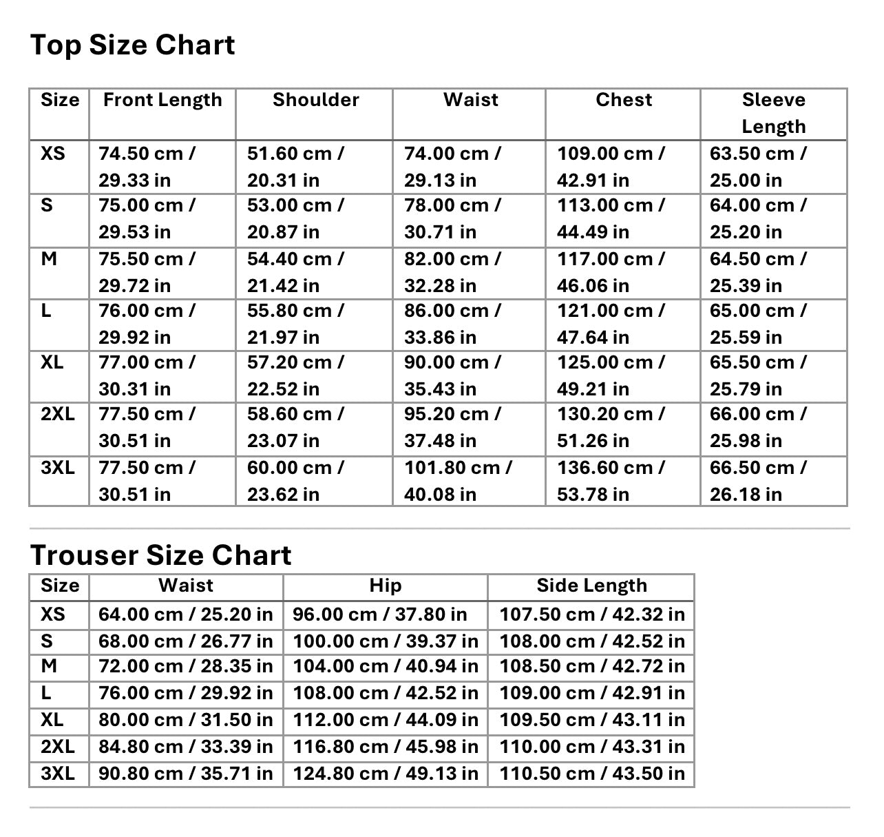 Trouser Size Chart
