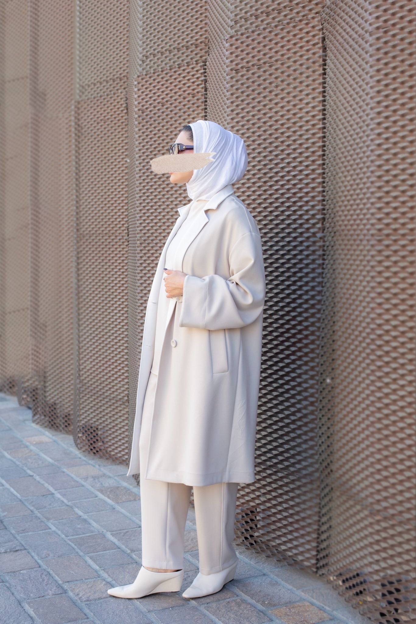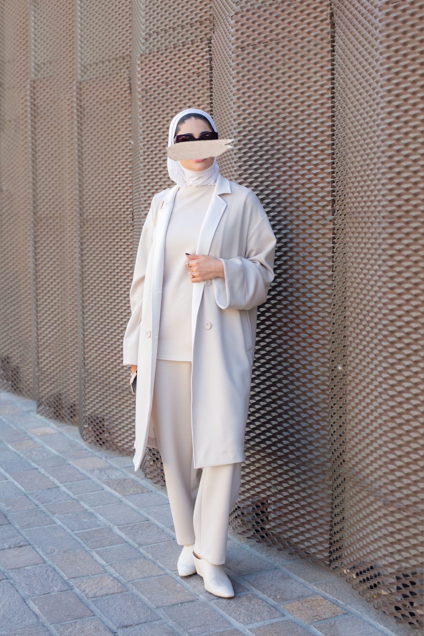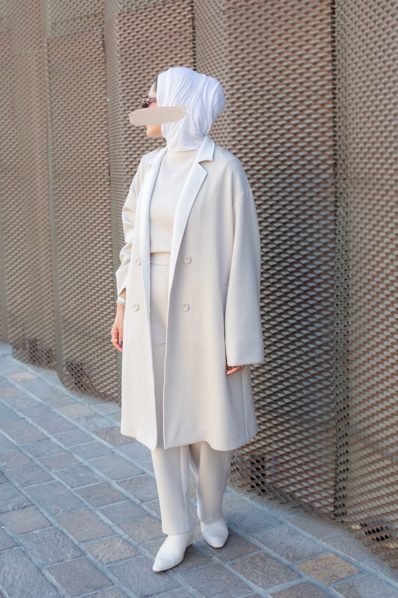 Three piece lux set - loose coat, sleeveless blouse & comfortable pants.