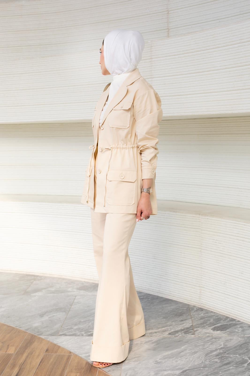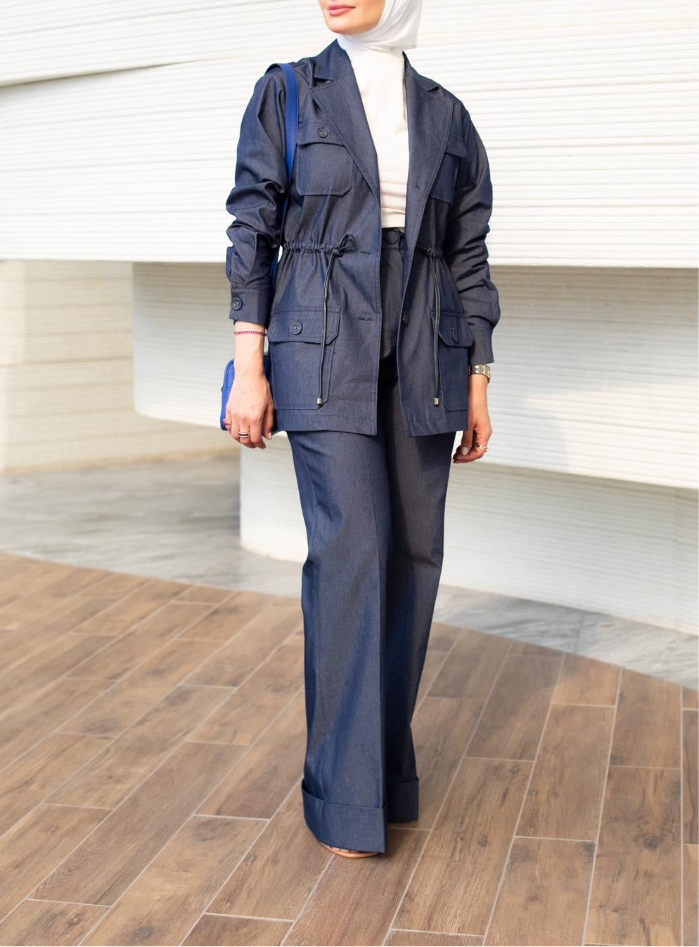 Regular Fitted Jacket & Flared Leg Pant with Bottom Fold in Light weight cotton fabric suitable for summer.