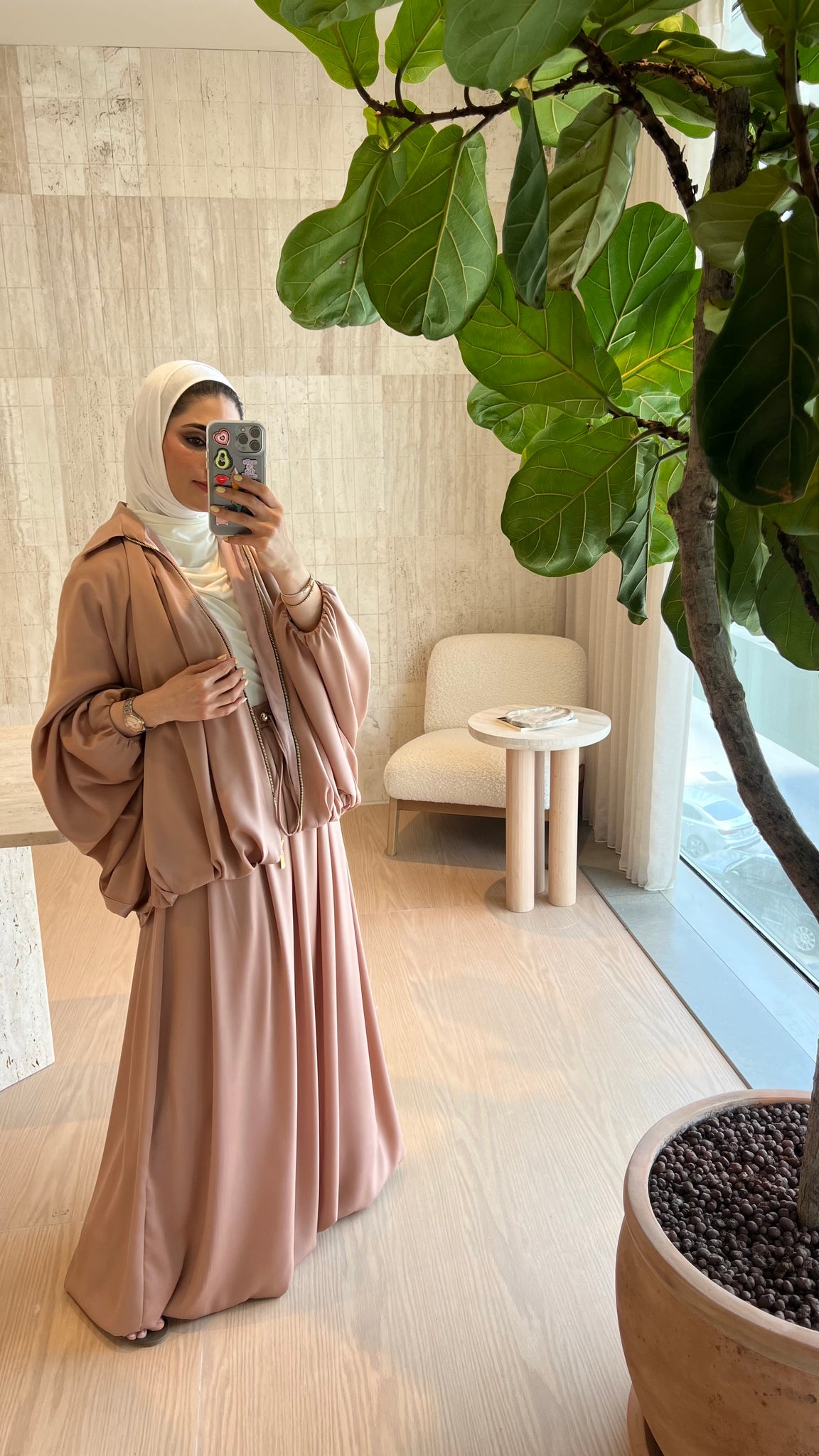 Loose fitting summer bomber jacket & skirt set.